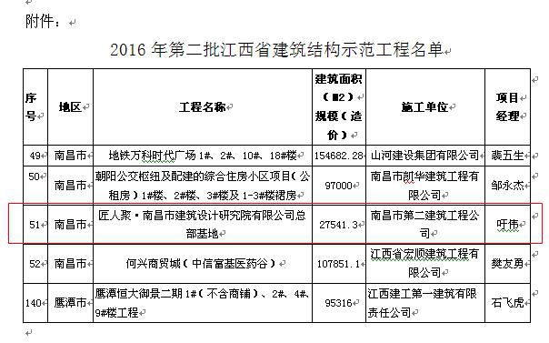 公司匠人聚?南昌市建筑設(shè)計(jì)研究院有限公司總部基地工地榮獲2016年第二批江西省建筑結(jié)構(gòu)示范工程稱號