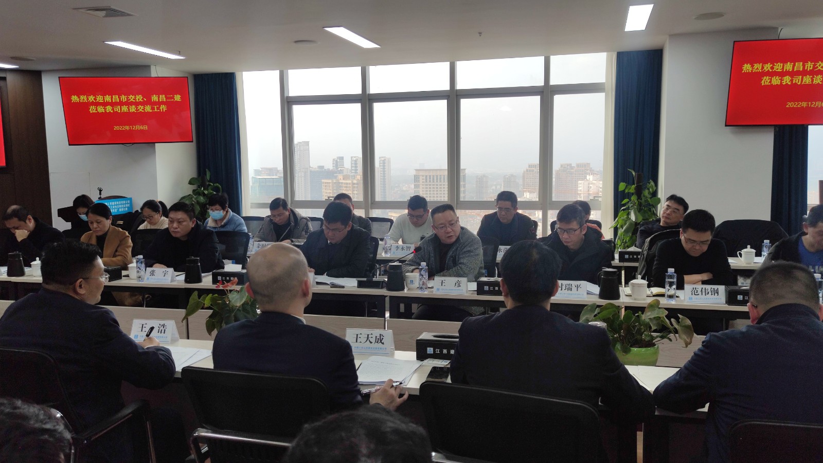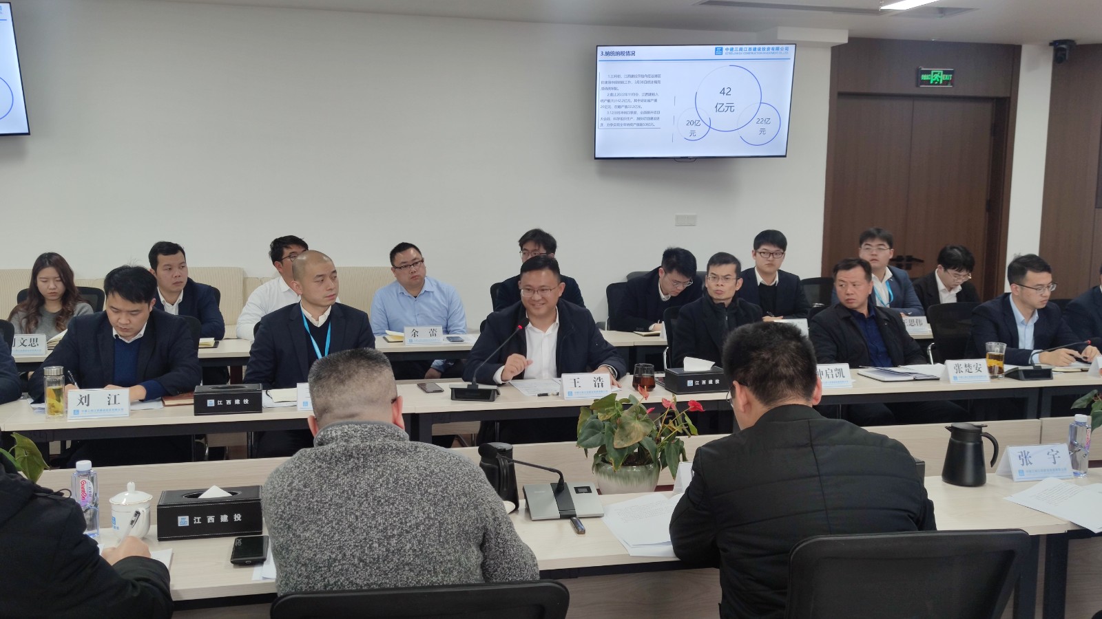 座談會(huì)上,與會(huì)人員觀看了中建三局和中建三局江西建設(shè)投資有限公司企業(yè)宣傳片。江西建投公司黨委副書(shū)記、執(zhí)行總經(jīng)理王浩介紹了中建三局及江西建投公司在贛發(fā)展情況,以及所建設(shè)的重點(diǎn)工程項(xiàng)目。公司黨委書(shū)記、董事長(zhǎng)王彥簡(jiǎn)要介紹了公司目前生產(chǎn)經(jīng)營(yíng)現(xiàn)狀,以及現(xiàn)階段企業(yè)發(fā)展中存在的難點(diǎn)、堵點(diǎn)問(wèn)題,希望借此機(jī)會(huì)向同行單位學(xué)習(xí)好的管理經(jīng)驗(yàn)和管理辦法。