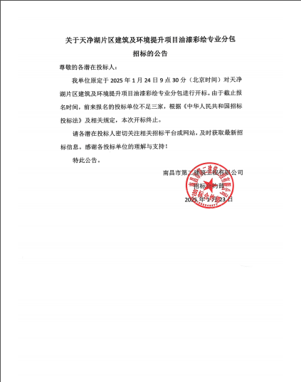 關(guān)于天凈湖片區(qū)建筑及環(huán)境提升項(xiàng)目油漆彩繪專業(yè)分包招標(biāo)的公告